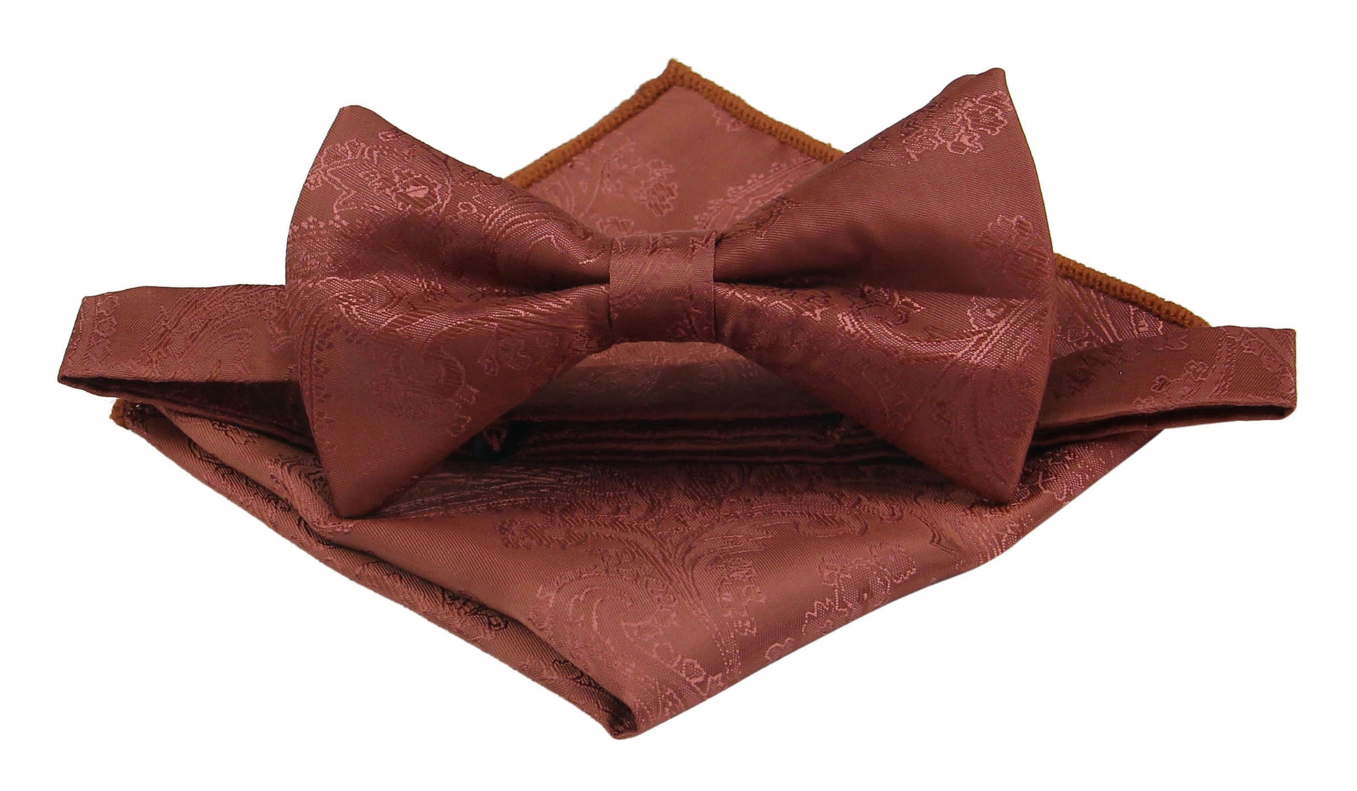 Cinnamon Bow Ties. Mens Cinnamon Wedding Bowties. Cinnamon Paisley Bow Ties for and Kid - with Matching Pocket Square Option